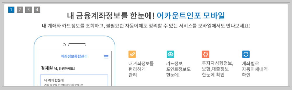 ▶ 모바일에서 어카운트인포 앱을 다운로드하여서 계좌통합조회가 가능
